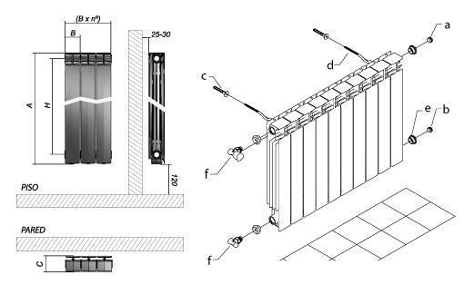 Diseño de doble aleteado. Óptimo rendimiento y extensa vida útil. Aptos para instalación con válvula termostática, lo que permite regular la temperatura de cada ambiente favoreciendo el ahorro energético. Producidos en aleación de aluminio fundido inyectado a presión. Rápida puesta en régimen. Acabado en pintura epoxi poliéster polimerizada. Disponible de 1 a 12 elementos (ancho de cada elemento 75mm). Variedad de alturas: 350mm y 500mm.